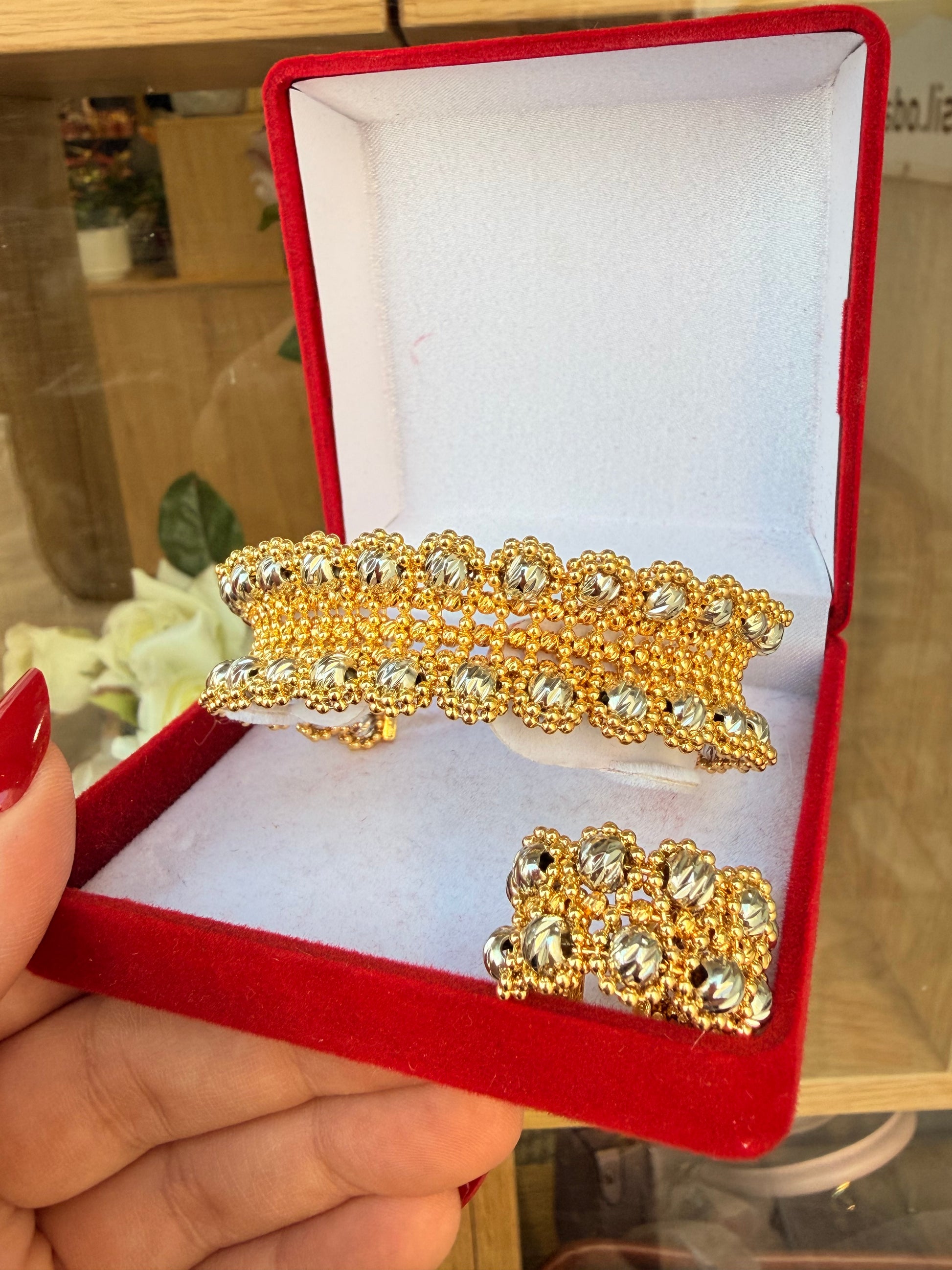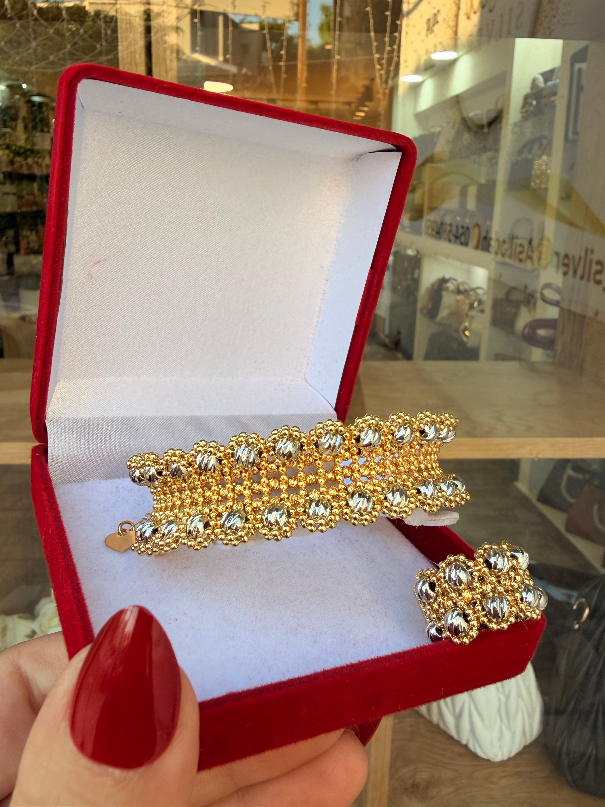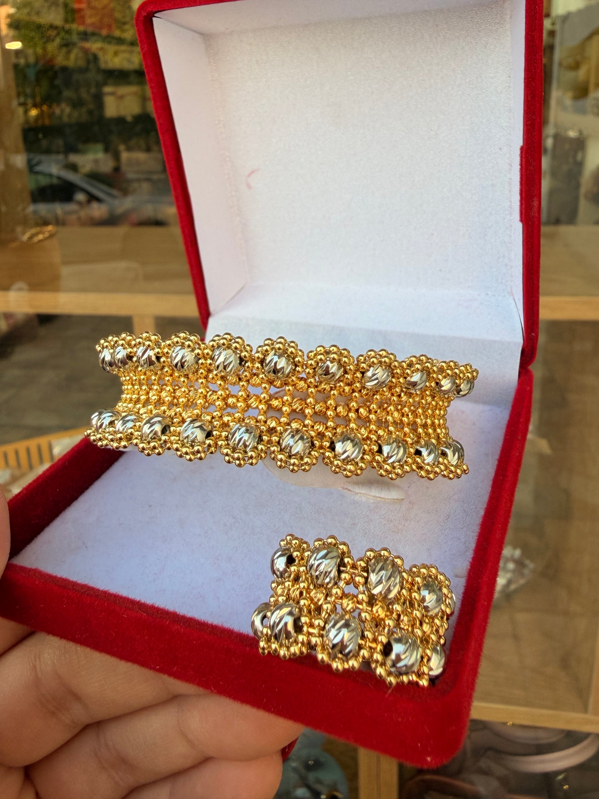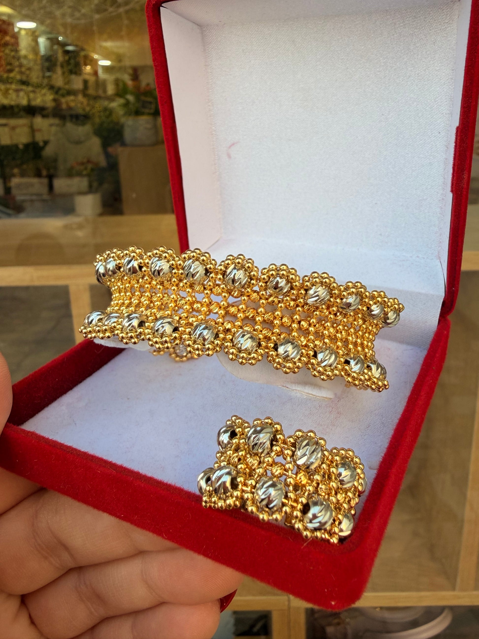 اسواره ذهبي باضافه خرز فضي وخاتم